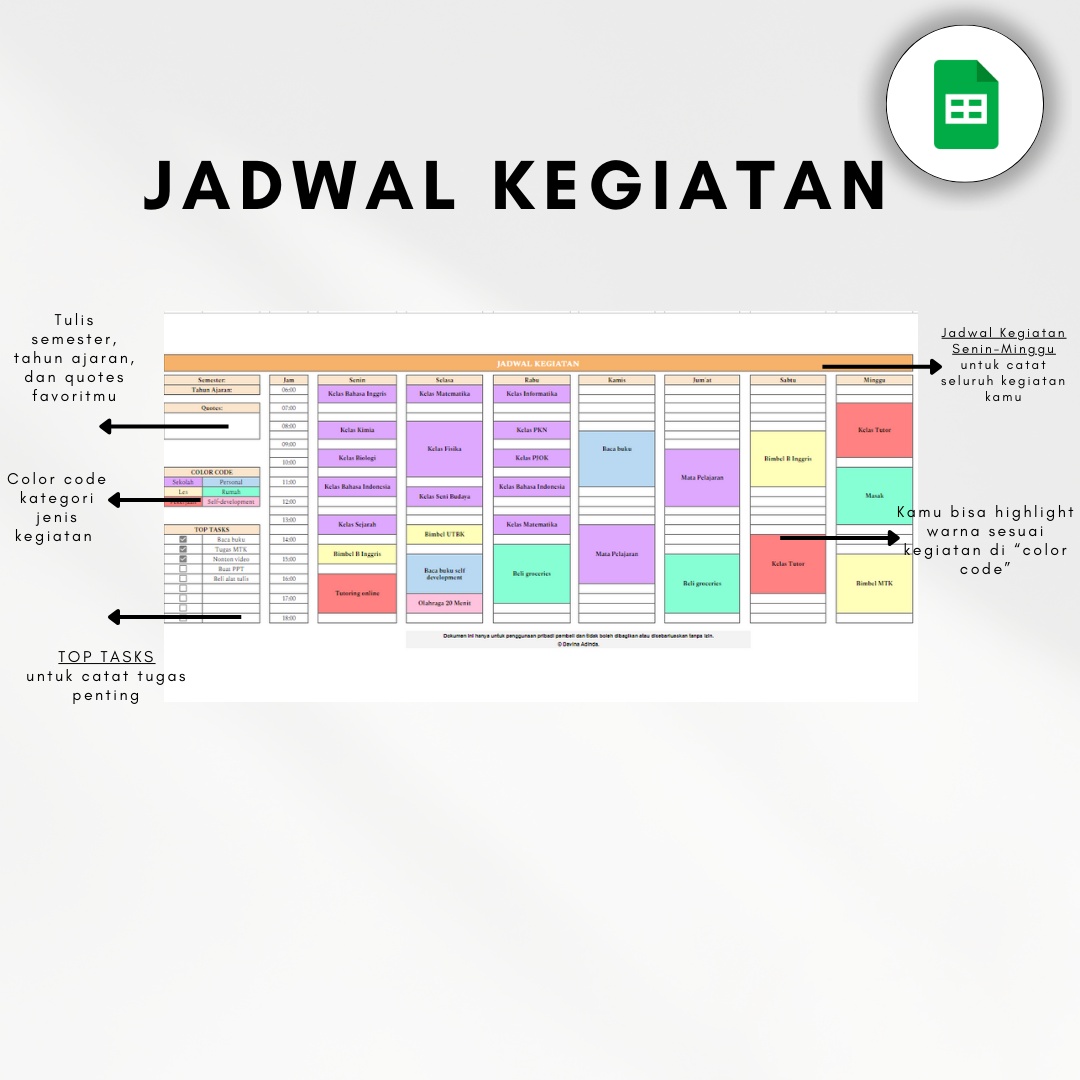 Nah, planner ini bisa membantu kamu mengatur waktu belajar dan aktivitas sehari-hari, supaya kamu bisa mencapai ranking 1 di kelas!